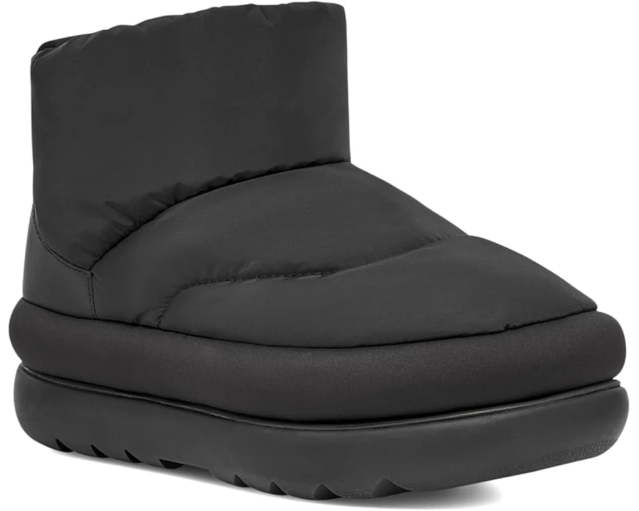 Stay stylish in soft warm comfort with the UGG® Classic Maxi Mini booties.SKU: #9725492Topically applied water repellency treatment.Textile upper. Rear pull tab construction.Round-toe silhouette.80% upcycled wool, 20% lyocell lining and insole.Rubber outsole.his product contains real fur from sheep or lamb. Fur may be sourced from Australia, Ireland, the United Kingdom, or the United States. It has been artificially dyed and treated.Imported.