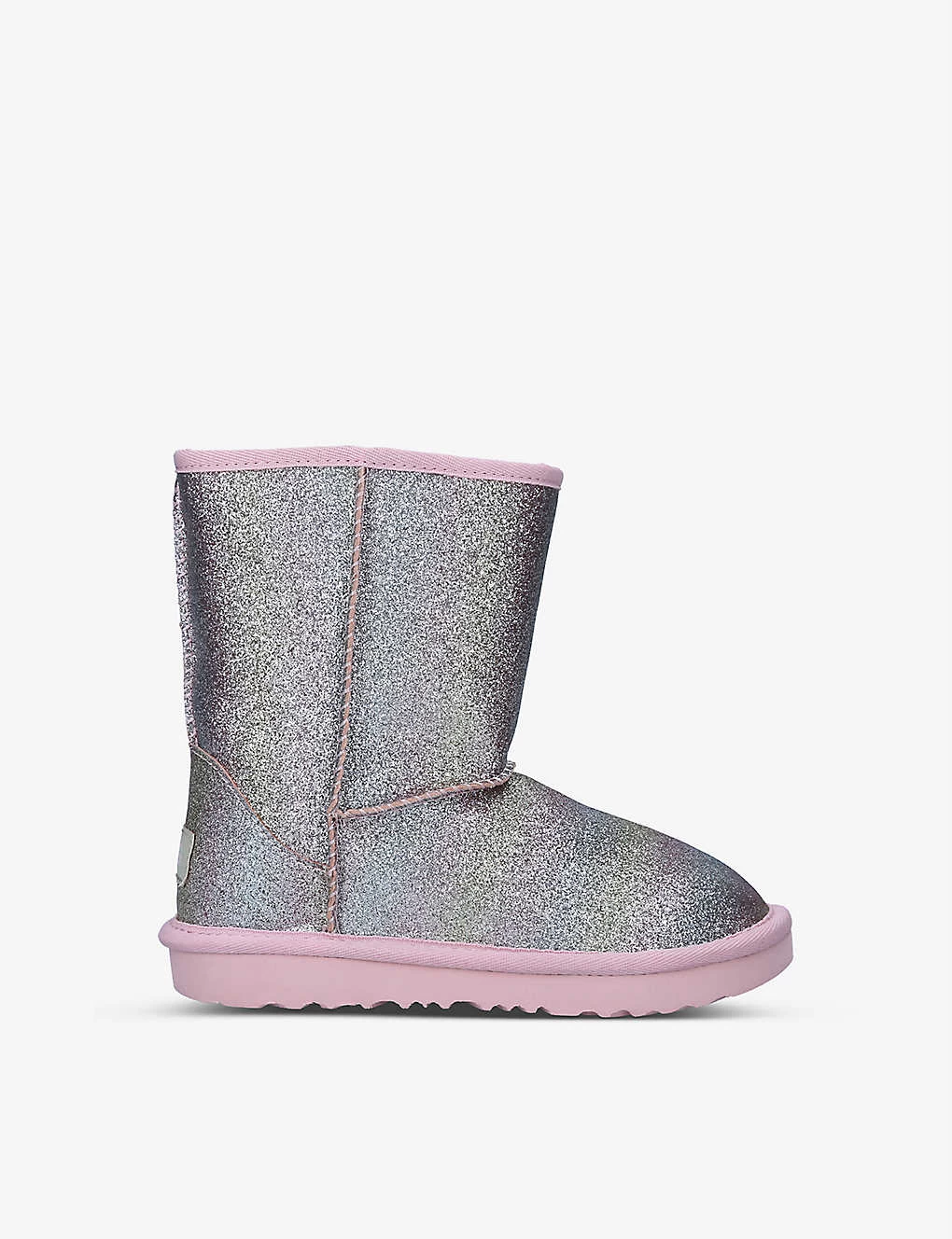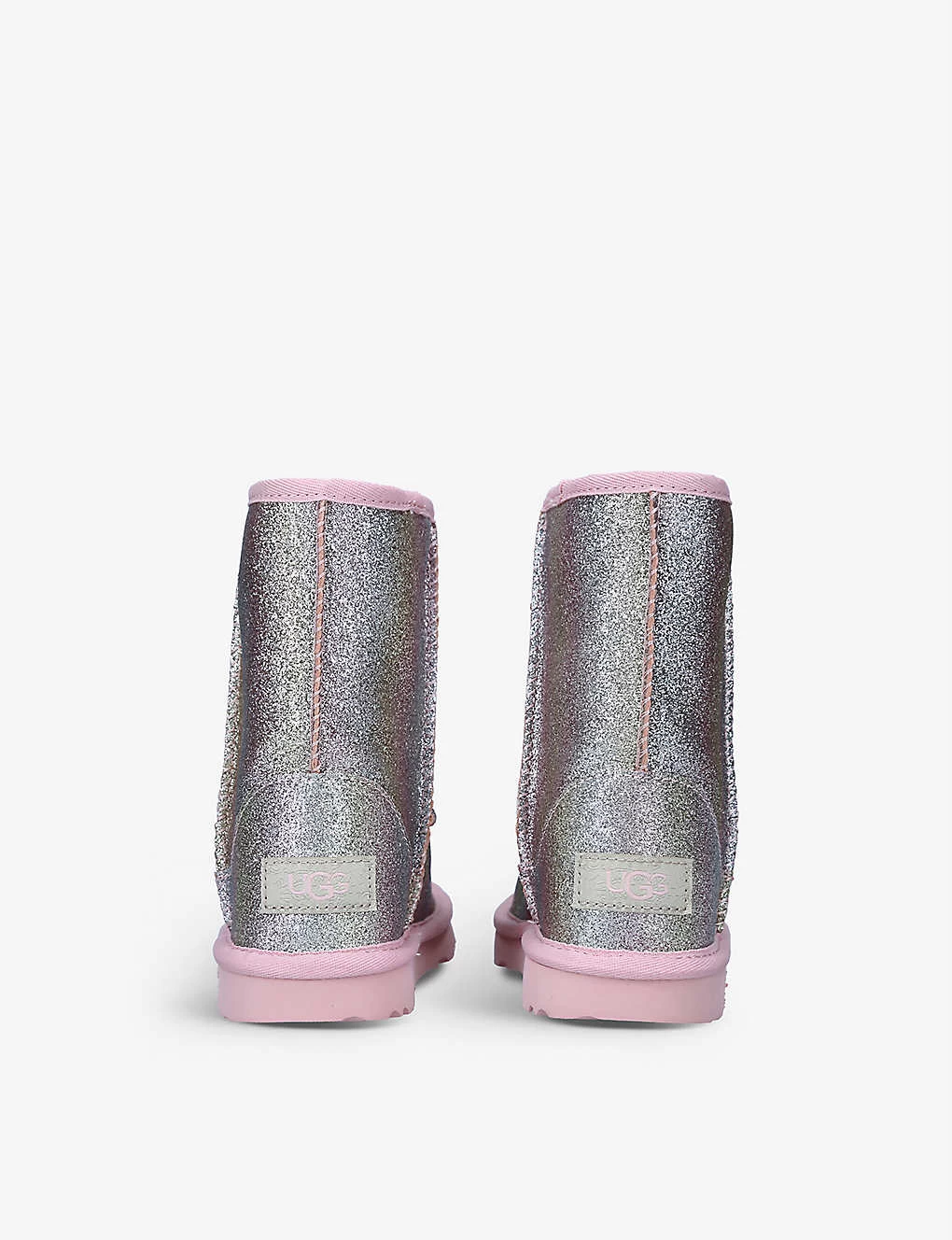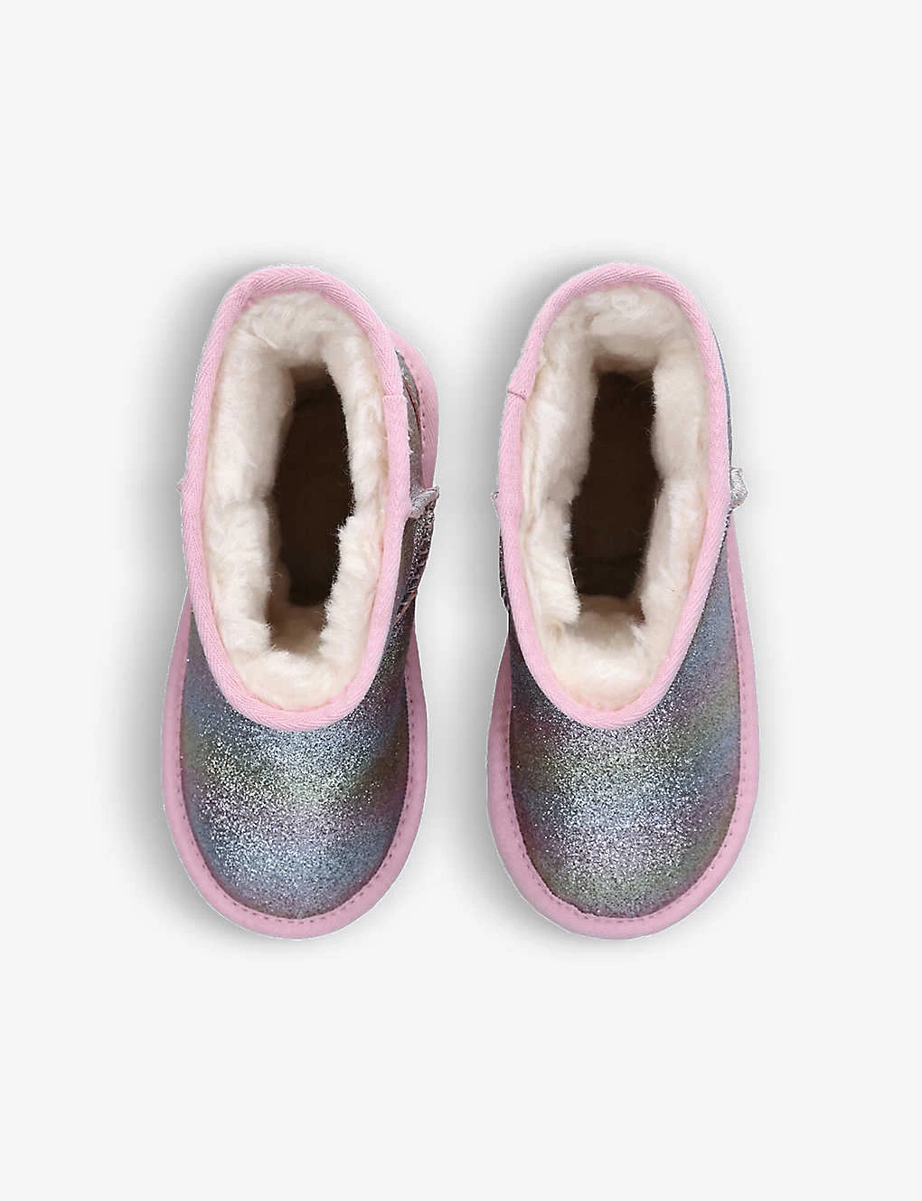 - Round toe, fully lined with UGGpure wool, fluffy sheepskin cuff, leather logo patch, moulded EVA outsole
