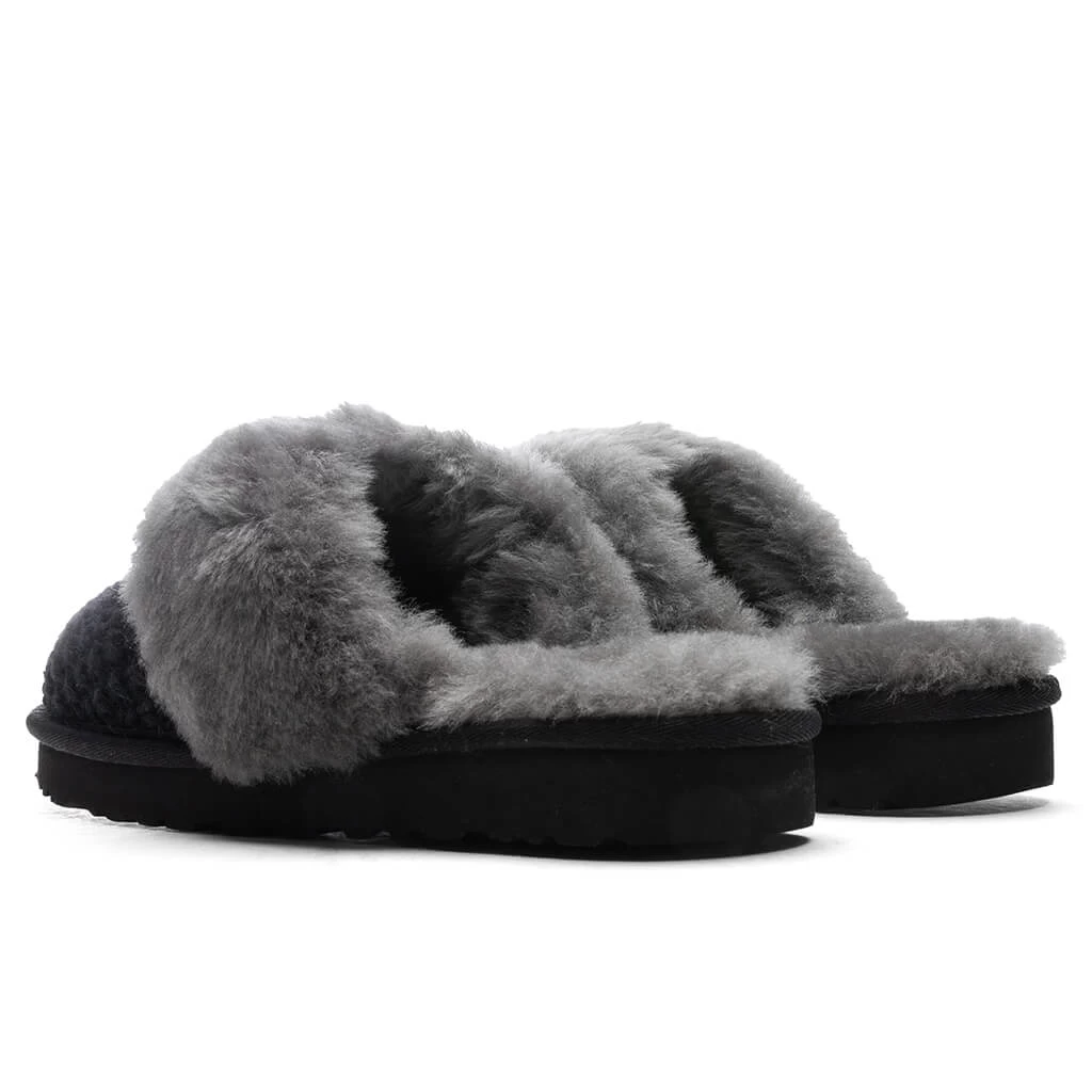 Add comfort to any outfit with the UGG Women’s Cozy Slipper. Featuring a fluffy collar and a durable sole, the design has traction without sacrificing comfort. A soft knit material comprises the upper, while the sheepskin collar provides optimal comfort. Sheepskin is also placed at the lining and insole, and the UGG Treadlite outsole enhances the design’s durability for a completed look.