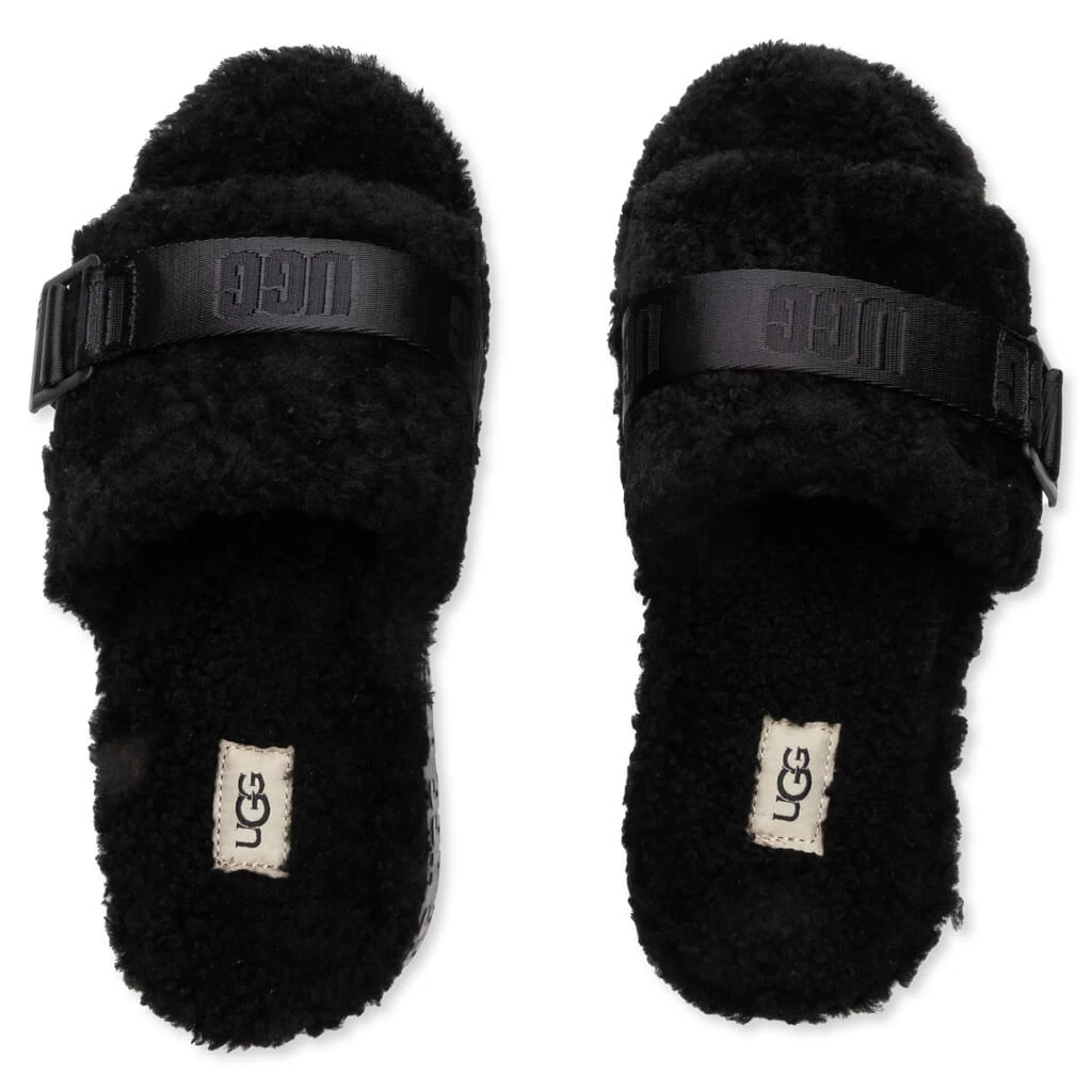 The UGG Women’s Fluffita Slipper is comfortable and functional in its design due to its sheepskin upper and webbing vamp strap with a signature UGG graphic logo and metal buckle. Sheepskin also comprises the insole, while a UGG graphic molded EVA outsole enhances the design’s durability. The design is complete with a UGG logo stitched at the insole.