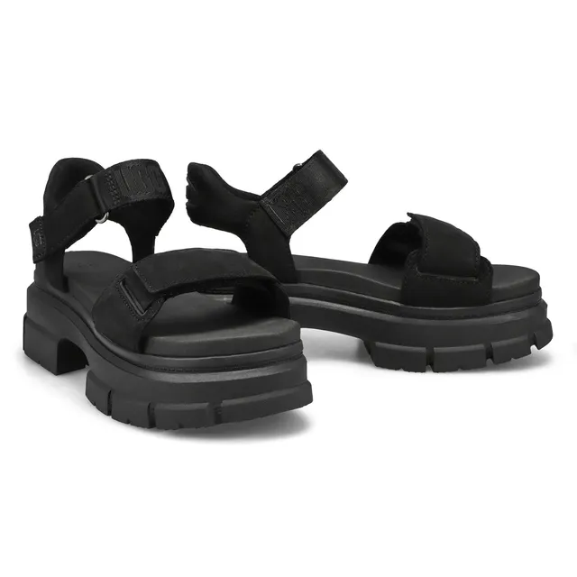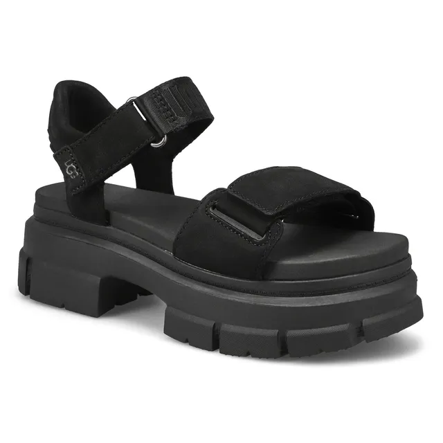 The Ashton Casual black platform sandal from UGG Australia adapts the iconic silhouette for the summer. This sandal features a chunky EVA and rubber outsole designed for all-day comfort. Secure a custom fit with an adjustable ankle strap and hook-and-loop closure. This style takes simple tees and shirts to new heights.