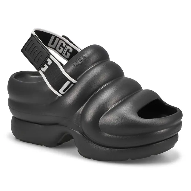 The Aww Yeah EVA black sandal from UGG Australia elevates the functional Sport Yeah slide into a style that bold fashion dreams are made of, bringing height and maximalism to a trend-right silhouette. Pair this eye-catching new style with casual, sportswear, and streetwear outfits, all while comforted by Aww Yeahs contoured EVA footbed. This style features a removable and adjustable logo strap to expand your styling possibilities.