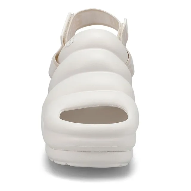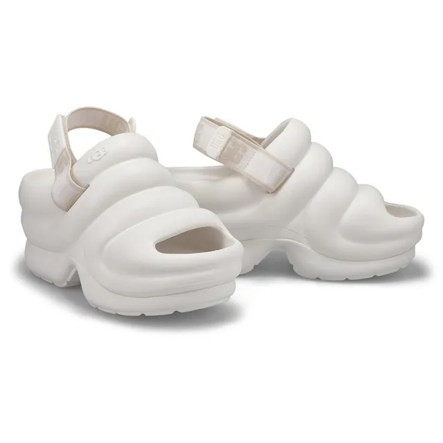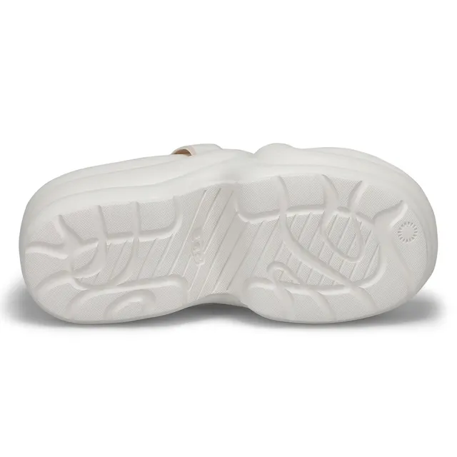 The Aww Yeah EVA bright white sandal from UGG Australia elevates the functional Sport Yeah slide into a style that bold fashion dreams are made of, bringing height and maximalism to a trend-right silhouette. Pair this eye-catching new style with casual, sportswear, and streetwear outfits, all while comforted by Aww Yeahs contoured EVA footbed. This style features a removable and adjustable logo strap to expand your styling possibilities.