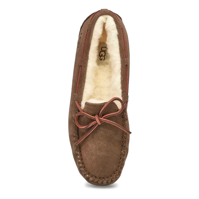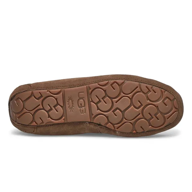 Your feet will thank you once you slip on the Dakota chestnut moccasin slipper from UGG Australia. Featuring luxurious sheepskin with wool fleece wicks away moisture. The Dakota moccasin is designed with a rubber sole allows for indoor/outdoor use. Slight dye transfer may occur with darker coloured sheepskin during first few weeks of wear.