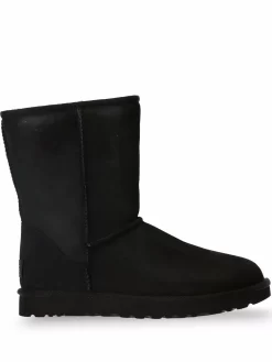 Classic Short ll boots from UGG featuring black, sheepskin, shearling lining, logo patch to the rear, ankle-length, round toe and flat rubber sole.