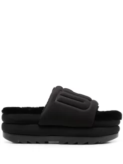UGG updates its portfolio of comfortable footwear with these Maxi platform slides for SS23. Boasting a padded construction and logo-embossed wide strap, this pair is finished with the brand’s signature fluffy sheepskin lining and cushioning EVA soles.
