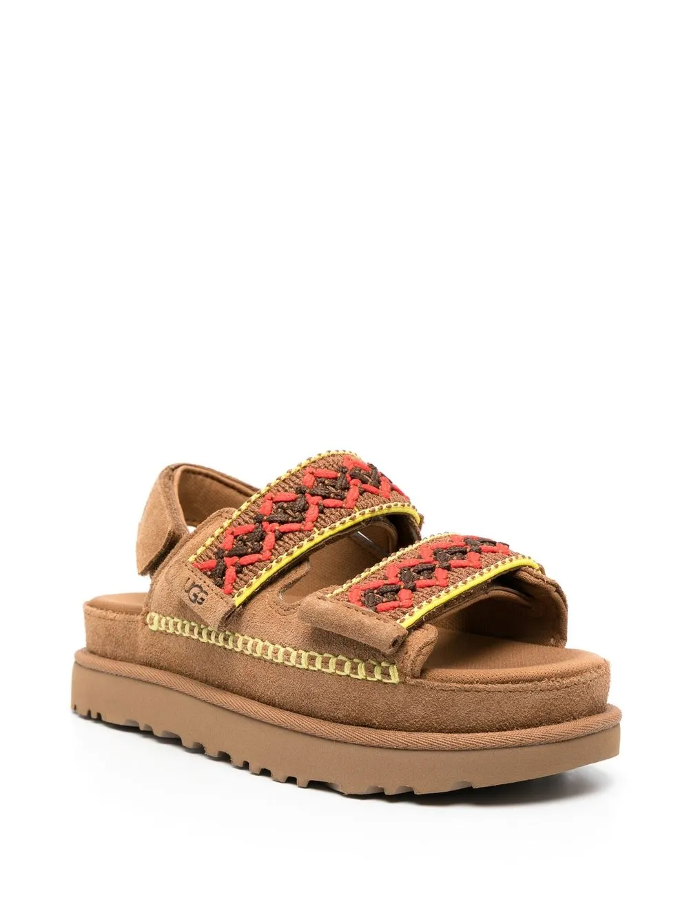 suede touch-strap sandals from UGG featuring brown, calf suede, front touch-strap fastening, rear touch-strap fastening, open toe and flat rubber sole.